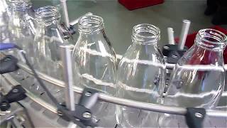 Линия розлива состоит из модулей линейного типа, связанных между собой конвейером: модуль ополаскивания бутылок, модуль дозирования, модуль укупорки. Сборочные единицы и детали, комплектующие изделия модулей, выполнены из коррозионностойких сталей и пластмассы, допустимых к использованию в молочной промышленности.