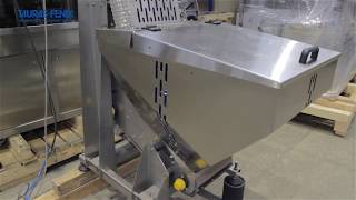 Осуществляется методом весового дозирования HBM, либо с помощью дополнительной опции электромагнитных расходомеров KROHNE (Германия). Величина дозы продукта устанавливается с пульта управления машиной и регулируется бесступенчато. Отсечение дозы производится пневмоуправляемыми клапанами с пеногашением. Контактирующие с продуктом поверхности продуктового бункера, трубопроводов, расходомеров и отсечных клапанов выполнены из материалов, отвечающих требованиям стандартов 3-А и EHEDG.