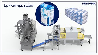 Автомат формирования групповой упаковки из пакетов пюр пак. Купить станок для упаковки pure pack в термоусадочную пленку с установкой картонных перегородок между ними.